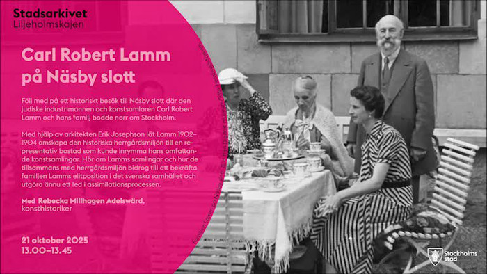 Med hjälp av arkitekten Erik Josephson lät Lamm 1902–1904 omskapa den historiska herrgårdsmiljön till en representativ bostad som kunde inrymma hans omfattande konstsamlingar. Här samsades verk av samtida konstnärer som Bruno Liljefors, Anders Zorn, Carl Larsson och Carl Milles i det privata konstgalleriet med möbler av svenska 1700-talsmästare, vävda tapeter från Vasatiden, jugendkeramik och europeiska bronser i sällskapsrummen. Hör om Lamms samlingar och hur de tillsammans med herrgårdsmiljön bidrog till att bekräfta familjen Lamms elitposition i det svenska samhället och utgöra ännu ett led i assimilationsprocessen.