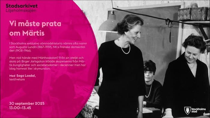 Med Saga Loxdal, textilvetare som även driver det populära Instagramkontot @sagasokandastockholm. Föredraget hölls 30 september 2025.