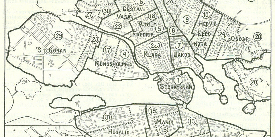 Så här var staden indelad i rotar, denna rotekarta är från 1924.
